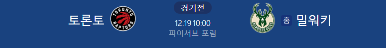 NBA분석 12/19일 밀워키 토론토 NBA중계 농구분석 농구중계