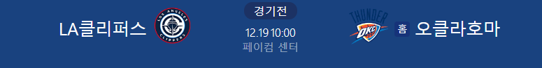NBA분석 12/19일 오클라호마 LA클리퍼스 NBA중계 농구분석 농구중계