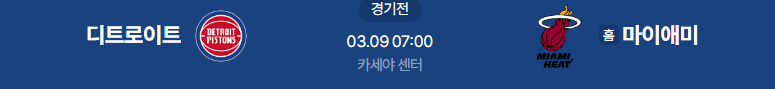 NBA분석 3/9일 마이애미 디트로이트 NBA중계 농구분석 농구중계