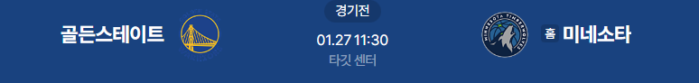 골든스테이트는 백투백 원정이다. 골든스테이트는 직전경기(1/26) 원정에서 미네소타 상대로 111-85 승리를 기록했으며 이전경기(1/23) 원정에서 댈러스 상대로 115-123 패배를 기록했다. 2연패에서 벗어나는 승리가 나왔으며 리바운드 45-50, 3점슛 16-13, 턴오버 12-25의 결과. 무릎 통증으로 출전 여부가 불투명했음에도 불구하고 스테픈 커리(26득점)가 득점과 경기 운영에서 중심 역할을 수행했고, 적극적인 수비 가담으로 스틸에도 기여했던 경기. 지비 버틀러, 조나단 쿠밍가가 결장했지만 모지스 무디(19득점)가 외곽과 컷인 공격으로 득점을 보탰고, 브랜딘 포지엠스키(12득점)도 어시스트와 수비에서 힘을 더했던 상황. 또한, 무려 20개 스틸을 기록하며 경기 흐름을 장악했던 승리의 내용 이였다. 정규시즌 원정경기에서는 9승14패 성적.