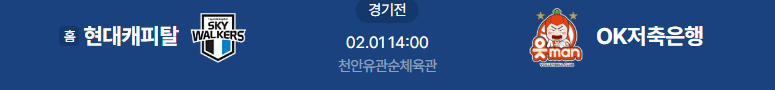 프로배구분석 2/1일 현대캐피탈 OK저축은행 배구중계 배구분석
