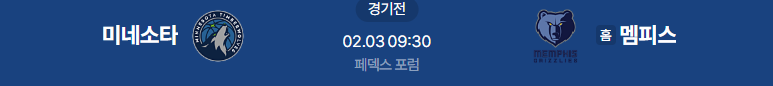 - 02.02 NBA분석 2/3일 멤피스 미네소타 NBA중계 농구분석 농구중계