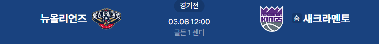 NBA분석 3/6일 새크라멘토 뉴올리언스 NBA중계 농구분석 농구중계