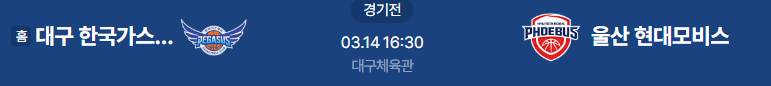 # 홈팀 : 대구 한국가스공사 (13승32패)