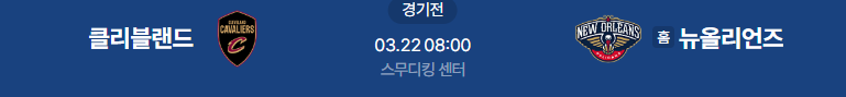 NBA분석 3/22일 뉴올리언스 클리블랜드 NBA중계 농구분석 농구중계