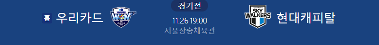 프로배구분석 11/26일 우리카드 현대캐피탈 배구중계 배구분석