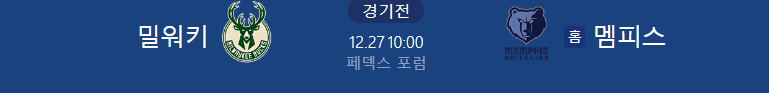 NBA분석 12/27일 멤피스 밀워키 NBA중계 농구분석 농구중계