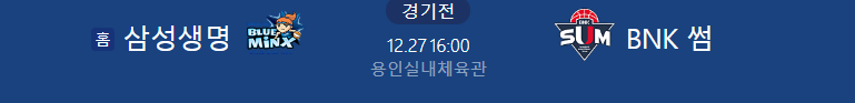 프로농구분석 12/27일 삼성생명 BNK썸 농구중계 농구분석