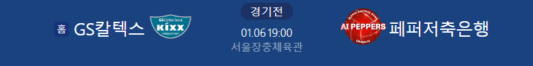 # 홈팀 : GS칼텍스 (9승10패)