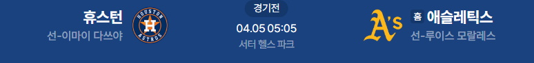 메이저리그분석 4/5일 애슬레틱스 휴스턴 메이저리그중계 MLB중계