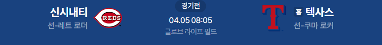 메이저리그분석 4/5일 텍사스 신시내티 메이저리그중계 MLB중계