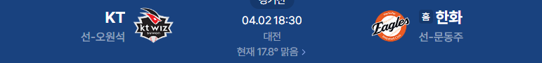 프로야구분석 4/2일 한화 KT 야구중계 KBO분석 KBO중계