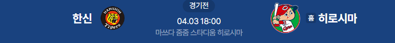 일본야구분석 4/3일 히로시마 한신 일본야구중계 스포츠중계
