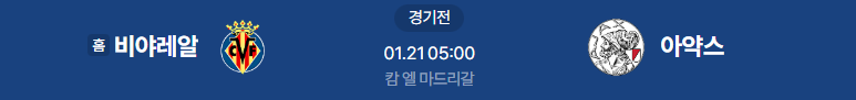 해외축구분석 1/21일 챔피언스리그 비야레알 아약스 해외축구중계