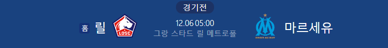 해외축구분석 12/6일 리그앙 릴OSC 마르세유 해외축구중계