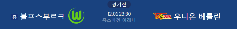 해외축구분석 12/6일 분데스리가 볼프스부르크 우니온베를린 해외축구중계