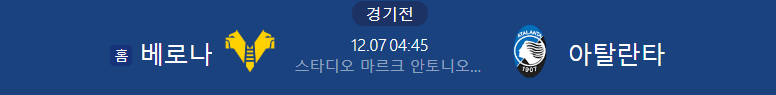해외축구분석 12/7일 세리에A 베로나 아탈란타 해외축구중계
