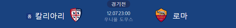 해외축구분석 12/7일 세리에A 칼리아리칼초 AS로마 해외축구중계