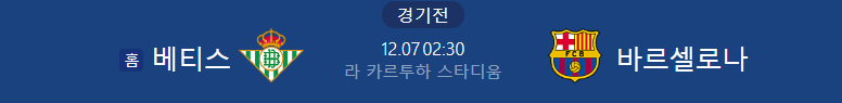 해외축구분석 12/7일 라리가 레알베티스 바르셀로나 해외축구중계