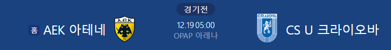 해외축구분석 12/19일 유로파리그 아테네 크라이오바 해외축구중계