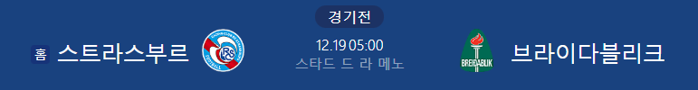해외축구분석 12/19일 유로파리그 스트라스부르 브라이다블리크 해외축구중계