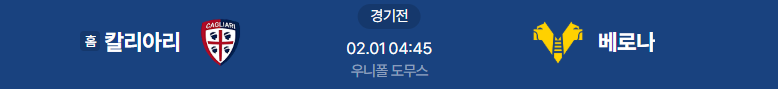 해외축구분석 2/1일 세리에A 칼리아리칼초 베로나 해외축구중계
