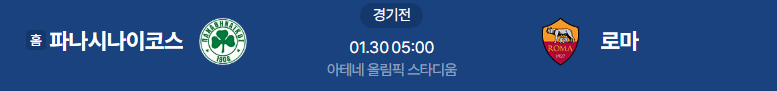해외축구분석 1/30일 유로파리그 파나시나이코스 로마 해외축구중계