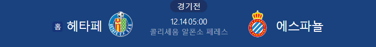 해외축구분석 12/14일 라리가 헤타페 에스파뇰 해외축구중계