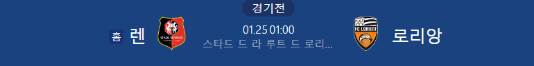 해외축구분석 1/25일 리그앙 스타드렌 로리앙 해외축구중계