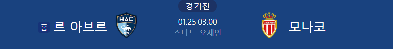 해외축구분석 1/25일 리그앙 르아브르 AS모나코 해외축구중계