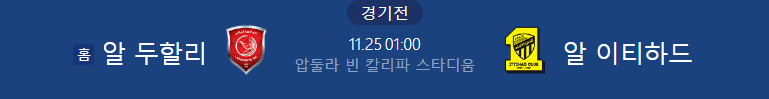 해외축구분석 11/25일 AFC챔피언스리그 알두할리 알이티하드 해외축구중계