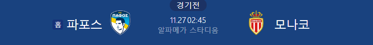 해외축구분석 11/27일 챔피언스리그 파포스 AS모나코 해외축구중계