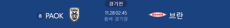 해외축구분석 11/28일 유로파리그 PAOK 브란 해외축구중계