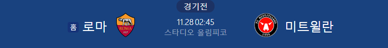 해외축구분석 11/28일 유로파리그 AS로마 미트윌란 해외축구중계
