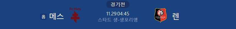 해외축구분석 11/29일 리그앙 메스 스타드렌 해외축구중계