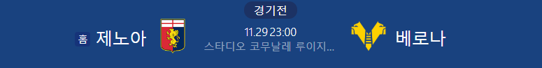 해외축구분석 11/29일 세리에A 제노아 헬라스베로나 해외축구중계