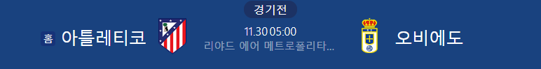 해외축구분석 11/30일 라리가 AT마드리드 오비에도 해외축구중계