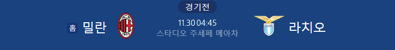 해외축구분석 11/30일 세리에A AC밀란 라치오 해외축구중계