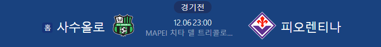 해외축구분석 12/6일 세리에A 사수올로 피오렌티나 해외축구중계
