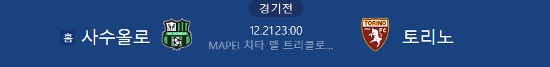 해외축구분석 12/21일 세리에A 사수올로 토리노 해외축구중계