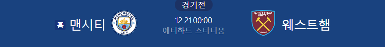 - 12.19 해외축구분석 12/21일 프리미어리그 맨시티 웨스트햄 해외축구중계