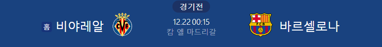 - 12.20 해외축구분석 12/22일 라리가 비야레알 바르셀로나 해외축구중계