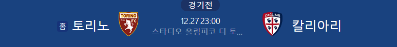 해외축구분석 12/27일 세리에A 토리노 칼리아리칼초 해외축구중계