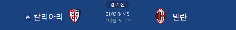 해외축구분석 1/3일 세리에A 칼리아리칼초 AC밀란 해외축구중계