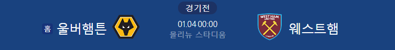 해외축구분석 1/4일 프리미어리그 울버햄튼 웨스트햄 해외축구중계