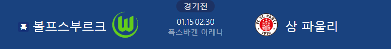 - 01.13 해외축구분석 1/15일 분데스리가 볼프스부르크 장크트파울리 해외축구중계