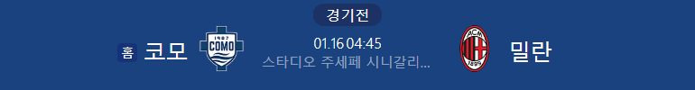 해외축구분석 1/16일 세리에A 코모 AC밀란 해외축구중계
