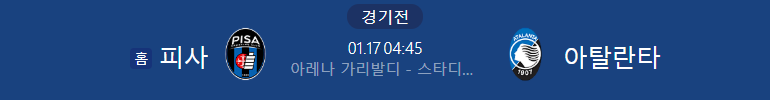 해외축구분석 1/17일 세리에A 피사 아탈란타 해외축구중계