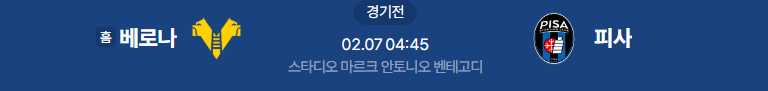 해외축구분석 2/7일 세리에A 베로나 피사 해외축구중계