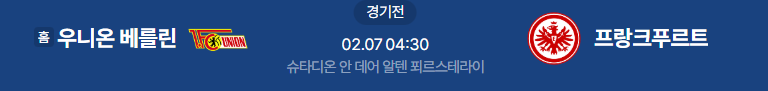 해외축구분석 2/7일 분데스리가 우니온베를린 프랑크푸르트 해외축구중계